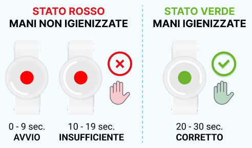 🟢 VERDE: Le mani risultano igienizzate correttamente ed è possibile procedere con l’attività assistenziale.